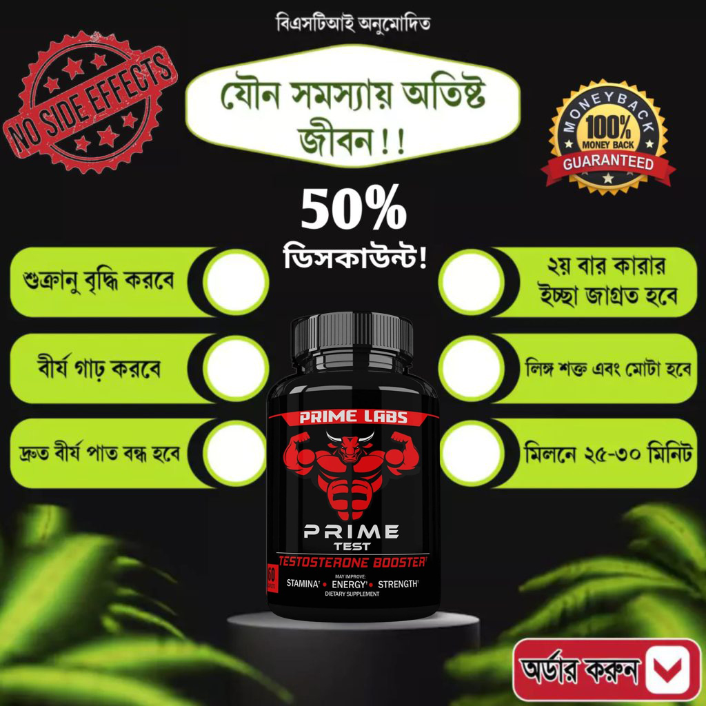 আর নয় হতাশা!!! এবার আপনি হয়ে উঠবেন একজন শক্তিশালী পুরুষ। আমরা আপনাদের মাঝে নিয়ে আসছি, বর্তমান সময়ের সবচেয়ে কার্যকারী একটা প্রোডাক্ট, Prime Test ভিটামিন ই সমৃদ্ধ।